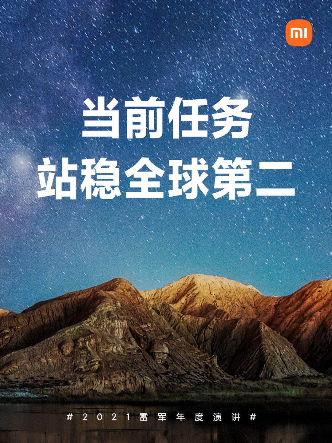但在此次演讲中,对于这个成绩,雷军保持了冷静,并再次强调:当前的任务是真正站稳全球第二。