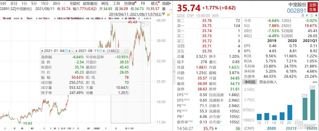 其最新的業績顯示,2021 年半年期實現每股收益 0.14 元,營業收入增長 33.78%,淨利潤增長 98.88%。但是其股價表現 2021 年不盡人意,整體跌幅超 17%。