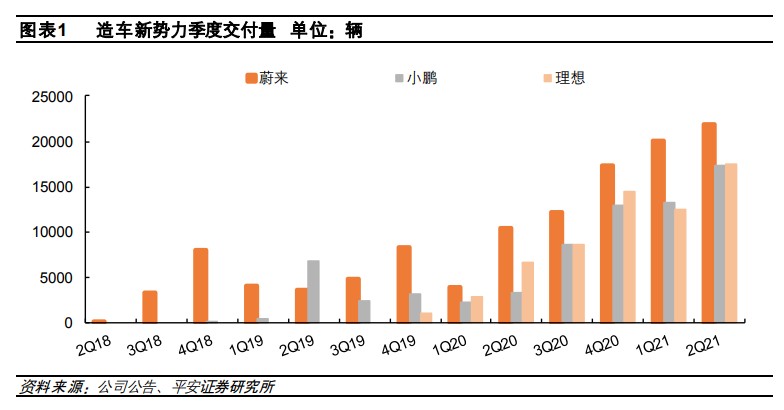單 6 月數據來看,蔚來 6 月交付車輛 8083 輛,略高於理想汽車;小鵬汽車 6 月份交付量為 6565 輛。