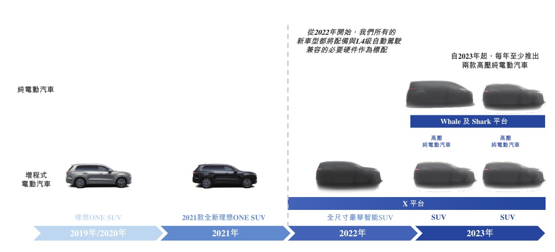 在聆訊資料中,理想汽車表示,從 2023 年開始,計劃每年至少推出兩款高壓純電動新車型。