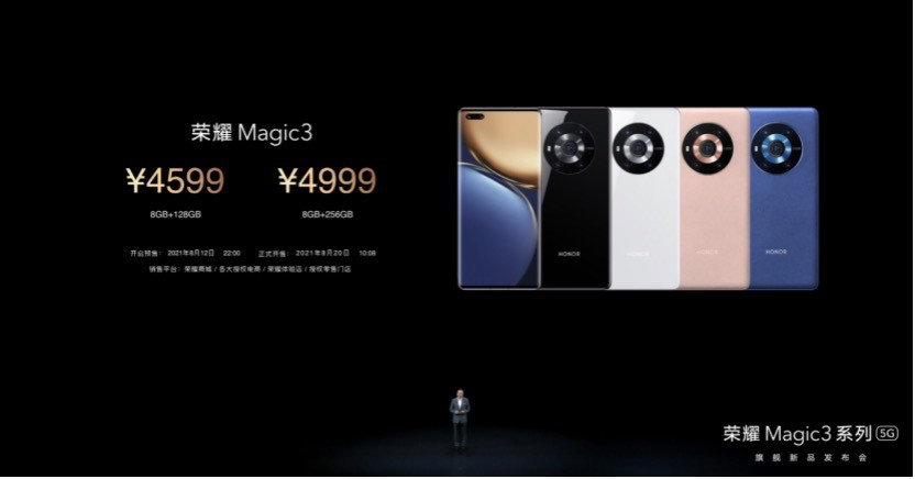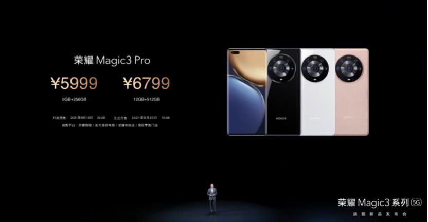 定價方面,榮耀Magic3、榮耀 Magic3 Pro、榮耀 Magic3 至臻版三款機型起售價分別為 4599 元、5999 元以及 7999 元。