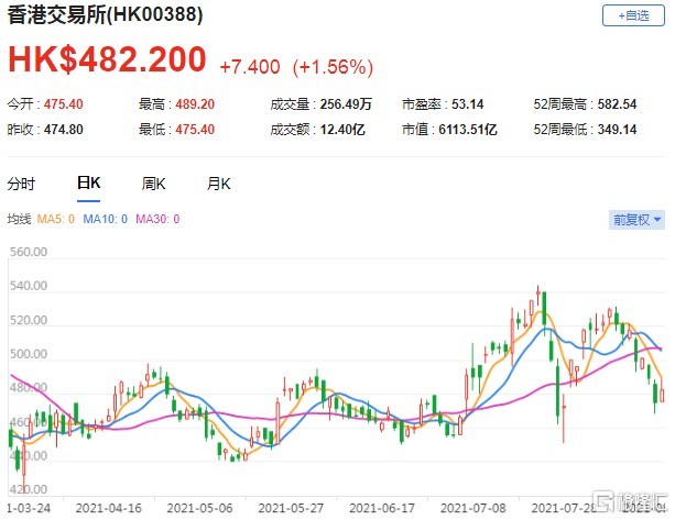 摩根大通發表研報,計入港交所第二季業績表現後,將 2021 至 2023 年每股盈利預測分別下調 9.7%、5.6% 及 5.7%,以反映次季一次性税項及 A 股期貨審批可能延遲至明年,其中今年預測較市場水平低 5%,明年及後年則高出 11% 及 17%。該行預測,計及滬深港通,2021 至 2023 年整體股票市場日均成交金額將達到 3,160 億、4,580 億及 6,030 億港元,並預測衍生產品平均每日成交張數將達 121.2 萬、254.6 萬及 381.9 萬張。摩通相應將目標價由 570 港元下調至 550 港元,維持增持評級。