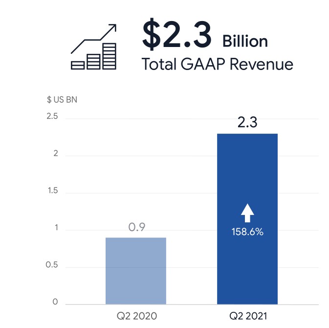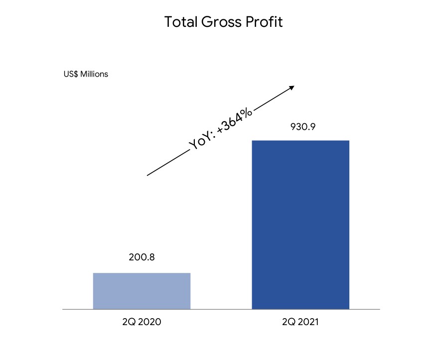 2021Q2, Sea 的總收入為 22.80 億元,相比去年同期上漲 159%。