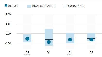 (2)2021Q2,Sea 實現淨虧損為-4.34 億美元,相比去年同期下降 10.14%;去掉股權激勵費用的調整後淨虧損為-3.21 億美元,對應 EPS 約-0.60 美元,低於市場一致預期的-0.49 美元。