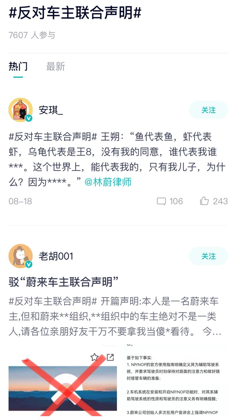 當#反對車主聯合聲明#的標籤不斷在蔚來 APP 中被提及,而蔚來車主也開始分化。那些死忠維護蔚來的車主,那些只是單純希望蔚來好的車主以及那些只是買車喜歡產品的車主。
