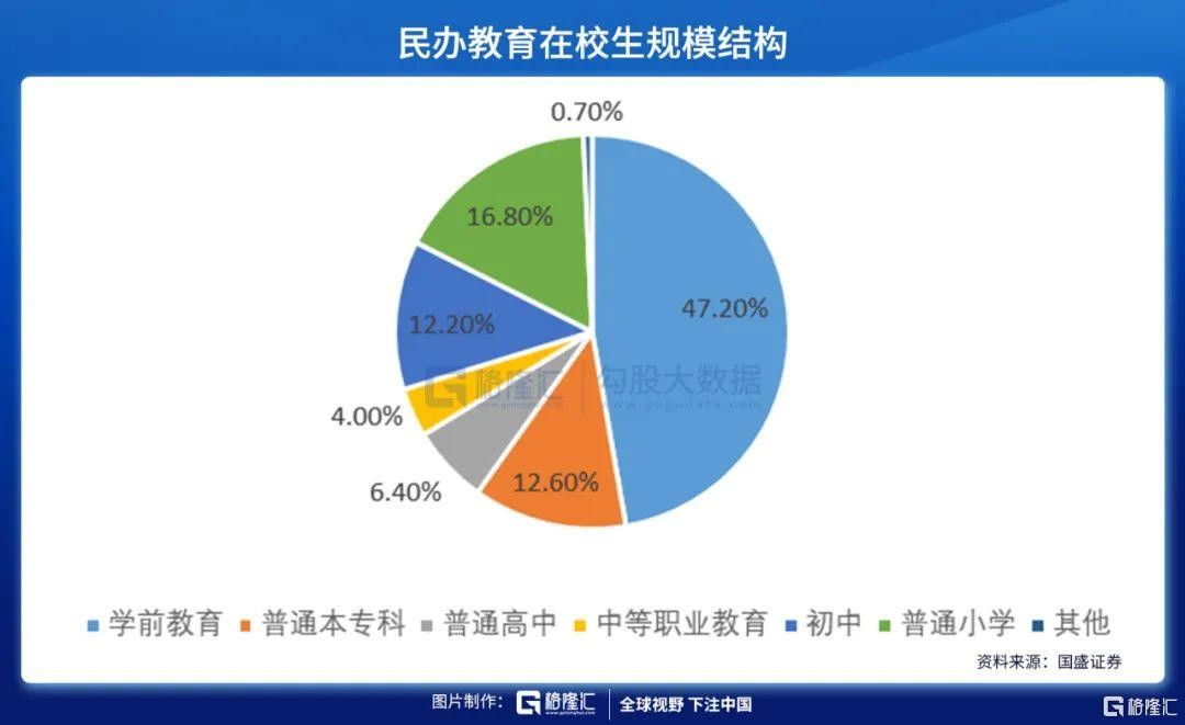 而另一方面,民辦教育中,高教板塊(普通本專科)在校生所佔比僅為 12.6%,僅為學前教育的約四分之一,即使比起民辦 K12,也仍有非常大的差距。在民促法實施條例落地後,政府的表態與對民辦高教成果的認可極可能對這個板塊產生二次催化。