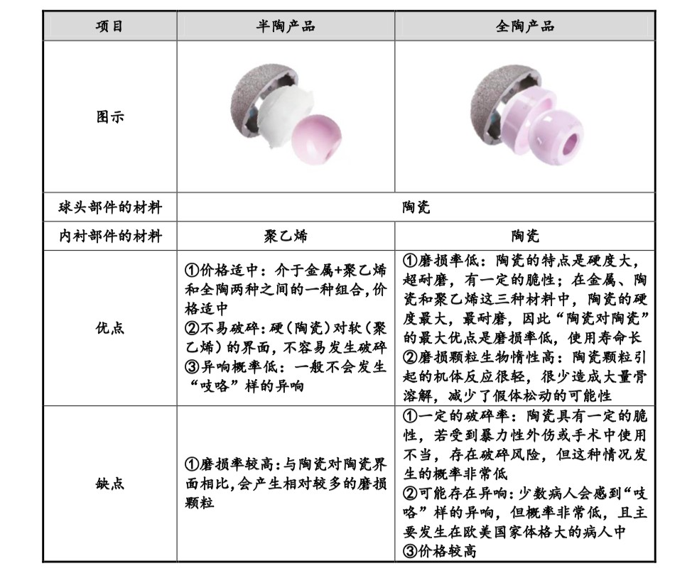 另據春立醫療在其招股説明書中所稱,半陶產品(即 COP 產品)、全陶產品(即 COC 產品)由於內襯材料不同,在磨損率、壽命、價格等方面存在一定差異。在髖關節置換手術中,可以基於患者年齡、是否存在禁忌症、患者經濟水平等因素選擇合適的產品。
