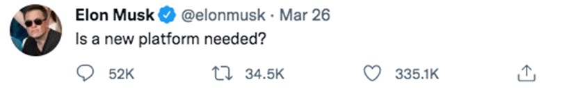 直至 3 月 26 日,他在一條推特上問:“你們需要一個新的社交平台嗎?”