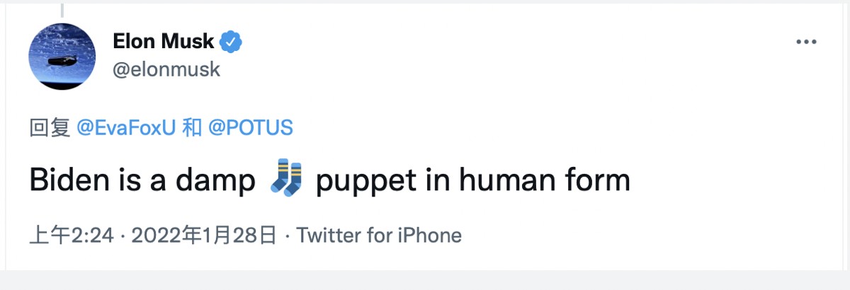 這引起了馬斯克的不滿,他曾多次發推文嘲笑諷刺拜登,比如 “拜登把美國公眾當成傻瓜”、“拜登是一個人形濕襪木玩偶”。