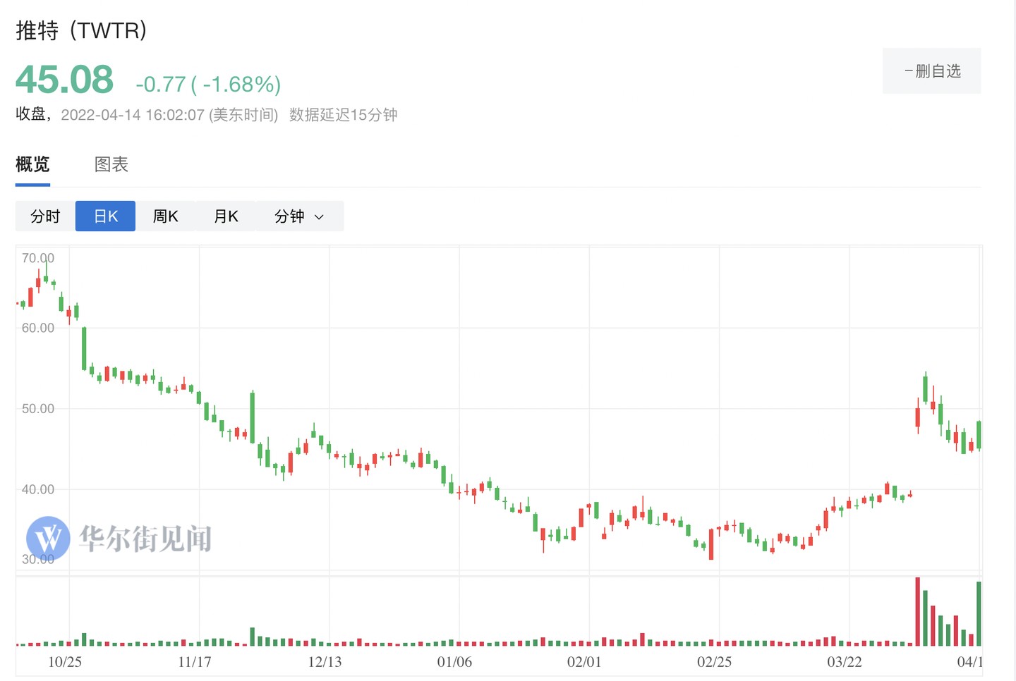 推特股價也隨着事態的一波多折而大起大落,推特宣佈馬斯克加入董事會消息後,推特迎來了 2013 年上市以來股價上漲最快的一天,單日暴漲 27%。 馬斯克宣佈不加入後,推特盤前跌 6%。