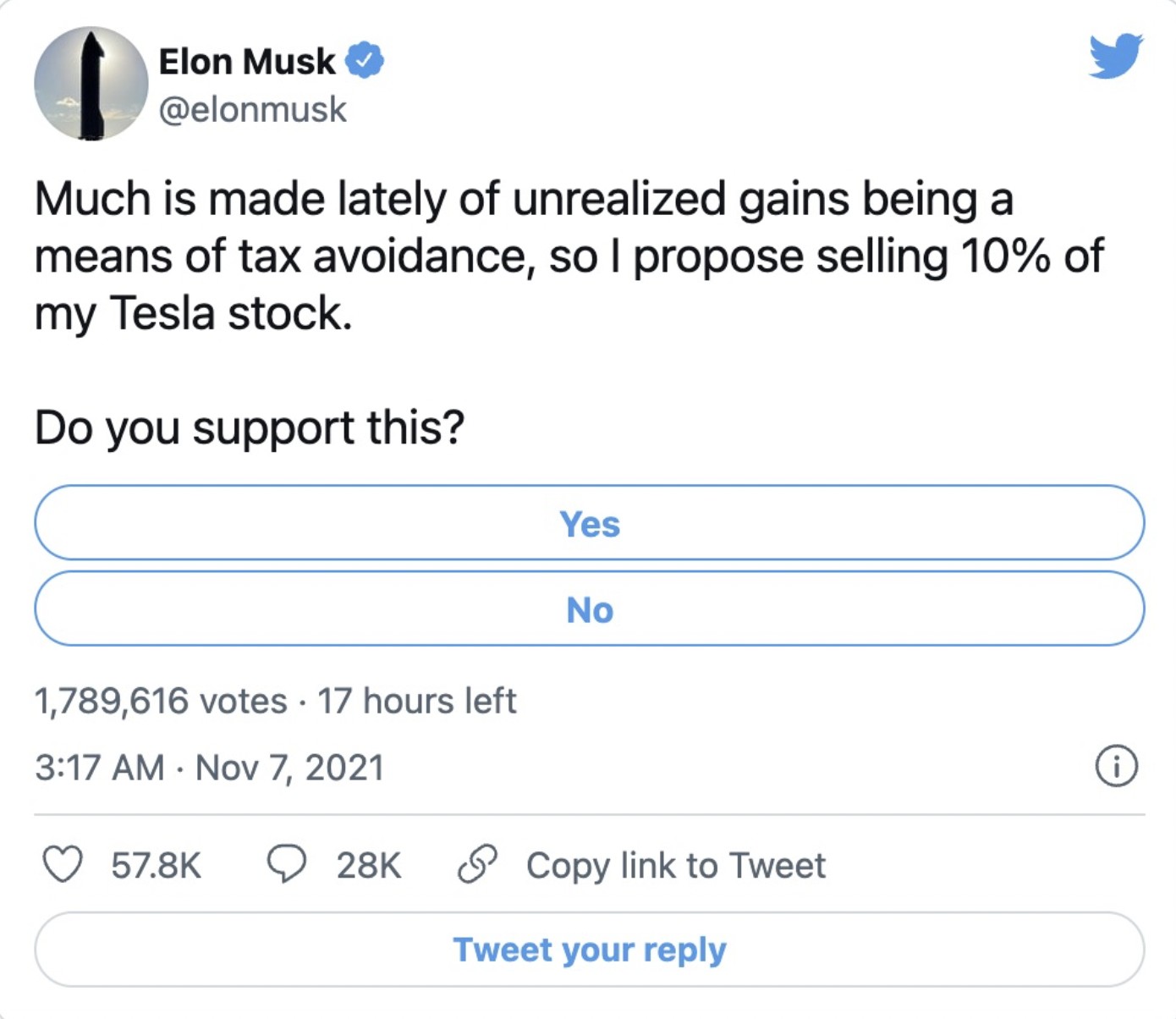去年 11 月,特斯拉 CEO 埃隆馬斯克在推特上邀請網友投票,共同決定他是否應該出售價值超過 200 億美元的特斯拉股票並納税。推特用户對此表示 “是”,馬斯克在 11 月減持套現了 50 億美元。