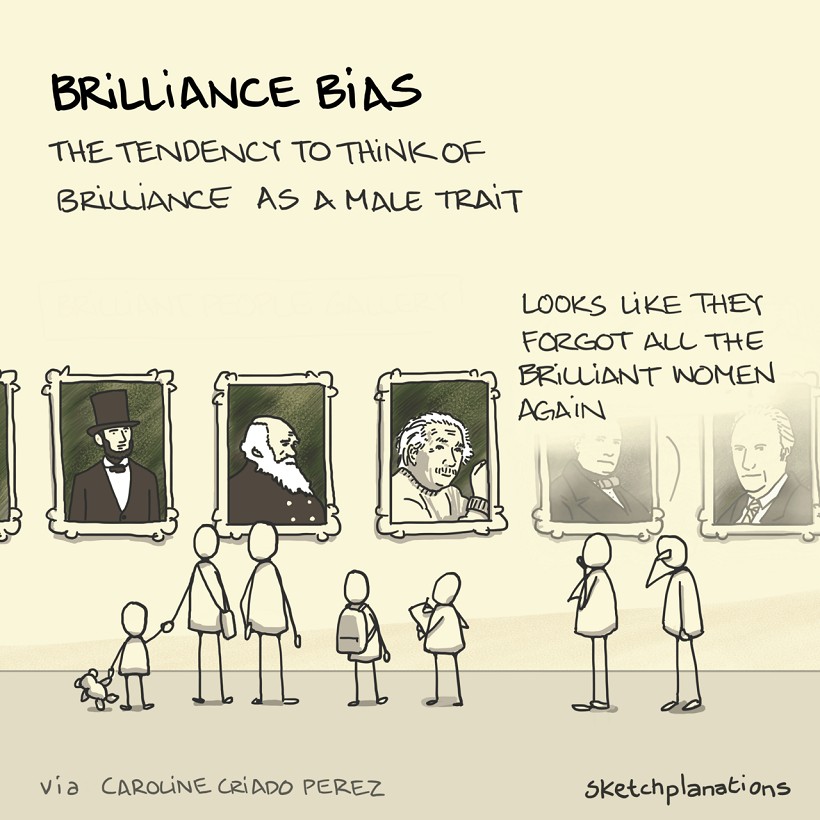 才智偏差(brilliance bias)是另一種常見的認知偏差,它讓我們更容易認為天才是一種男性特徵。這在一定程度上是因為在傳統的學術和管理職位上都缺乏女性代表,在過去的歷史中對於女性的記載較少。