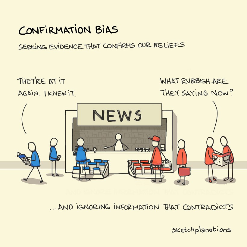 確認偏差(confirmation bias)是我們日常生活中遇到最多的一個。這種認知偏差會影響我們每天檢驗和評估假設的方式。