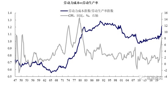 其二是長期通脹預期的錨定。沃克爾 - 格林斯潘構建的聯儲管理體系,從 1970 年代大滯脹時期吸取的最重要經驗,就是貨幣政策 “STOP-GO” 的循環容易破壞長期通脹預期的錨定——實體經濟要對聯儲抗擊通脹的決心以及將通脹維持在其長期政策目標的能力保有信心。從這個角度來看,防止當前的短期通脹預期高企演變為長期通脹信心喪失,是非常重要的——這就要求聯儲在抗通脹層面拿出較為延續的決心。(詳參《覆盤 70 年代美德日英:如何走出滯脹》)