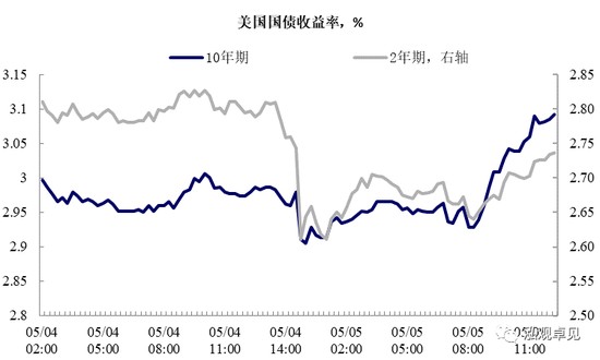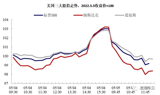 5 月 FOMC 會後的第一個交易日,美國市場呈現股債雙殺:10 年期國債收益率從當日的低點 2.93%一度拉昇 17bp至 3.1% 上方,創下 2018 年 11 月以來的新高;美國三大股指低開,且開盤後一路下滑,三大股指當日最大回撤超過 3%,納斯達克最大回撤超過 5%。