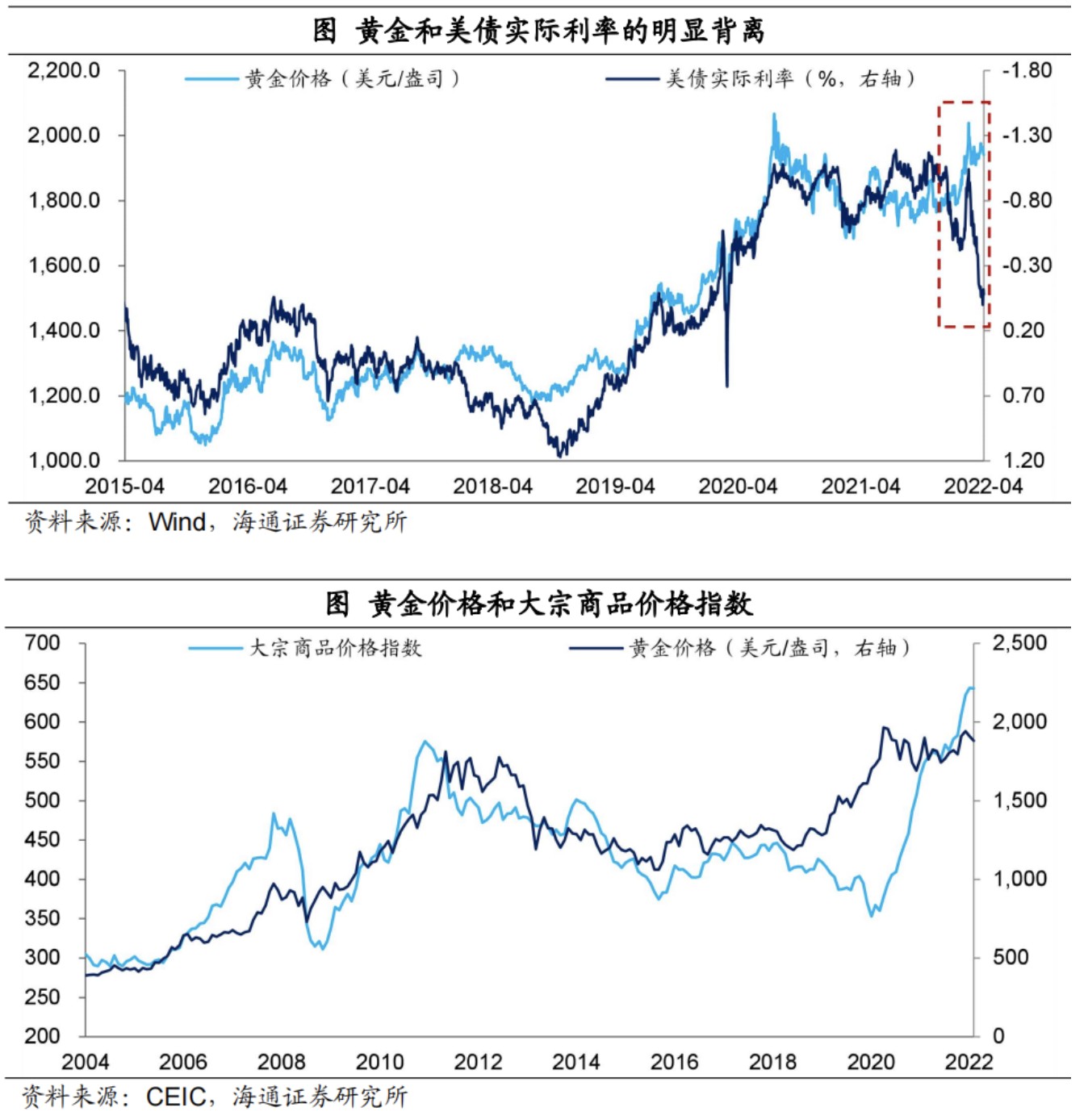 從大類資產的走勢來説,貨幣超發和需求推動的大宗商品漲價可能已經接近尾聲,但供給端壓縮的支撐作用依然較強。今年以來美債實際利率大幅上行,反映紙幣的實際回報率在提升,所以理論上來説黃金價格應該繼續下跌。但事實是,金價非但沒有下跌,還出現了上漲,這主要是地緣風險發酵在支撐。而黃金價格往往領先其它商品價格,黃金價格在經歷 2020 年上半年的大漲後,出現滯脹甚至下跌,其它大宗商品價格隨後大幅上漲,並且已經經歷了兩年的牛市,去年的漲幅甚至超過了 30%。理論上來説,今年貨幣超發對大宗的支撐應該會弱化,但隨着地緣風險對供給端的衝擊,大宗進一步出現了漲價。