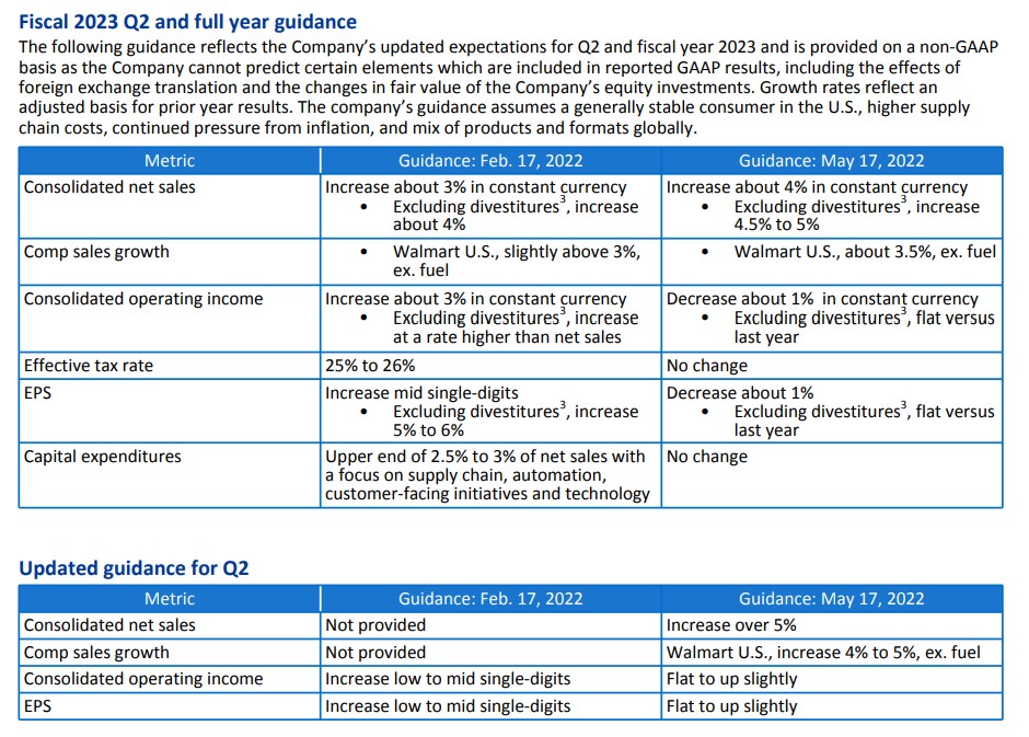 食品雜貨是沃爾瑪的首要銷售類別,根據美國勞工局的未經調整的數據,4 月份食品成本按 12 個月計算上升了 9.4%。由於沃爾瑪的目標是在通貨膨脹的環境中保持比競爭對手更低的價格,因此價格上漲侵蝕了利潤。高管們表示,雖然一些商品的價格將會上漲,但沃爾瑪將與供應商談判從而平衡這些成本。