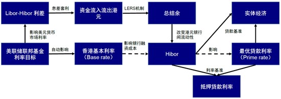 1)金管局入市是聯繫匯率機制下的正常操作。香港的聯匯制度屬於貨幣發行局制度,自 1983 年 10 月 17 日實施,金管局透過自動利率調節機制及履行兑換保證的堅決承諾來維持港元匯率 7.75~7.85 區間的穩定。因此,當港幣觸及 7.85 弱方兑換保證時,金管局購入銀行系統港幣,導致貨幣基礎收縮(金管局賬户總結餘減少),這意味銀行間港幣流動性收緊,推動 Hibor 抬升從而緩解匯率壓力,反之亦然。