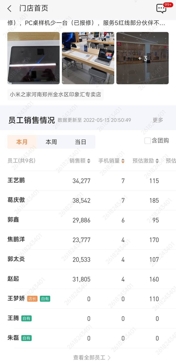 上週,小米河南分公司總經理王騰的微博也側面印證了上述從業者的看法。5 月 13 日,王騰在河南一家線下小米之家門店體驗之後,在網上曬出了門店員工銷售情況統計表。從曬出的截圖中可以看出,該小米之家包括王騰在內一共有員工 9 名,其中銷售額最高的員工賣出了 7 台手機,銷售額 38542 元,預估激勵 185 元。