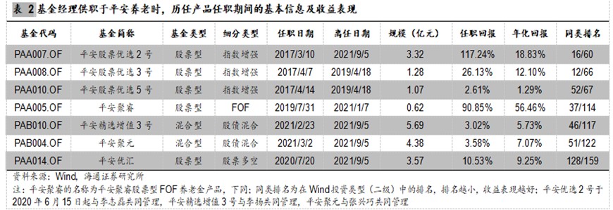 从上面这张表,我们可以看到,曹建文在平安养老管理的产品中,有两只指数增强基金的年化收益超过 12%,绝对收益产品——平安优汇的年化收益接近 10%,而股票型 FOF——平安聚睿的年化收益更是接近 60%。