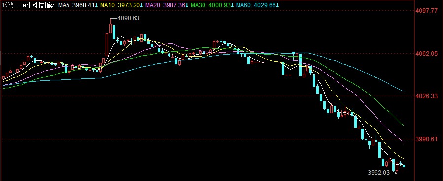 開盤後不久,恒指和恒生科技指數雙雙轉跌。恒指跌超 1%,再度失守 20000 點;恒生科技指數跌超 2%,失守 4000 點。