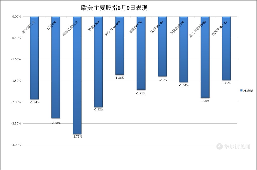 價值股為主的小盤股指羅素 2000 收跌 2.12%,創 5 月 26 日以來新低。科技股為重的納斯達克 100 指數收跌 2.74%,創 5 月 25 日以來新低,和羅素 2000 均連跌兩日。