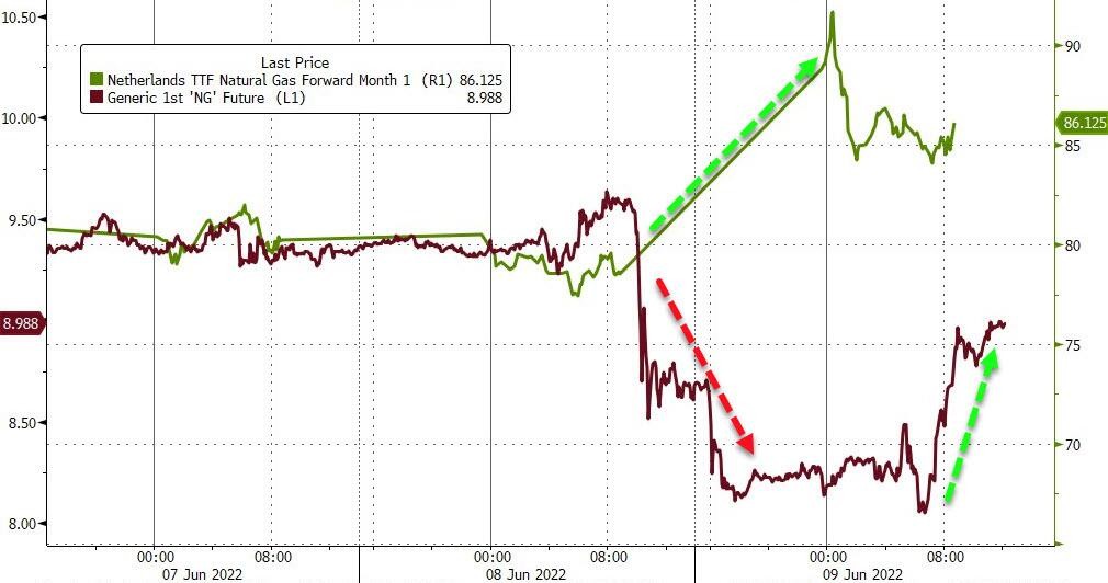 歐洲天然氣憑藉大反彈扭轉連日跌勢。ICE 英國天然氣期貨收漲 15.95%,創 5 月 16 日以來最大漲幅,報 150.61 便士/千卡,擺脱週三所創的 5 月 8 日以來低谷,最近五個交易日首度收漲,歐市盤初刷新日高時漲至 180 便士,日內漲近 38.6%;連跌六日的 TTF 基準荷蘭天然氣期貨收漲 6.89%,創 5 月 12 日以來最大漲幅,報 84.88 歐元/兆瓦時,創 6 月 1 日上週三以來收盤新高,截至週三連續兩日創 2 月 21 日以來新低,盤中曾漲至 91.9 歐元,日內漲 15.7%。