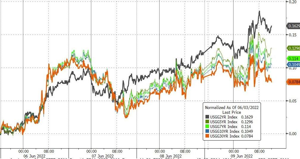 歐洲央行計劃 7 月加息 25 個基點,明確釋放 2011 年來首次加息的信號,並暗示9 月可能為打壓高通脹而更大幅加息,被視為追趕其他主要央行行動步伐的鷹派轉向。歐央行行長拉加德發佈會強化了 9 月更激進加息的可能性。歐洲國債價格全線大跌,國債收益率日內升幅均曾超過 10 個基點,基準 10 年期德債收益率繼續刷新約八年來高位,領銜攀升的意大利國債收益率升幅超過 20 個基點。