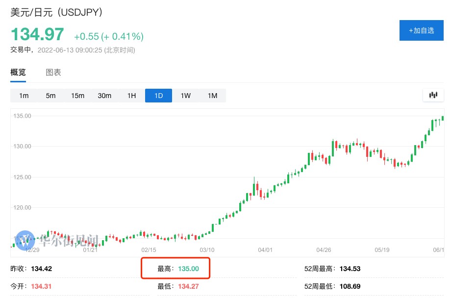 日元兑美元一度跌至 135,為 2002 年以來新低,邁向二十四年低點。