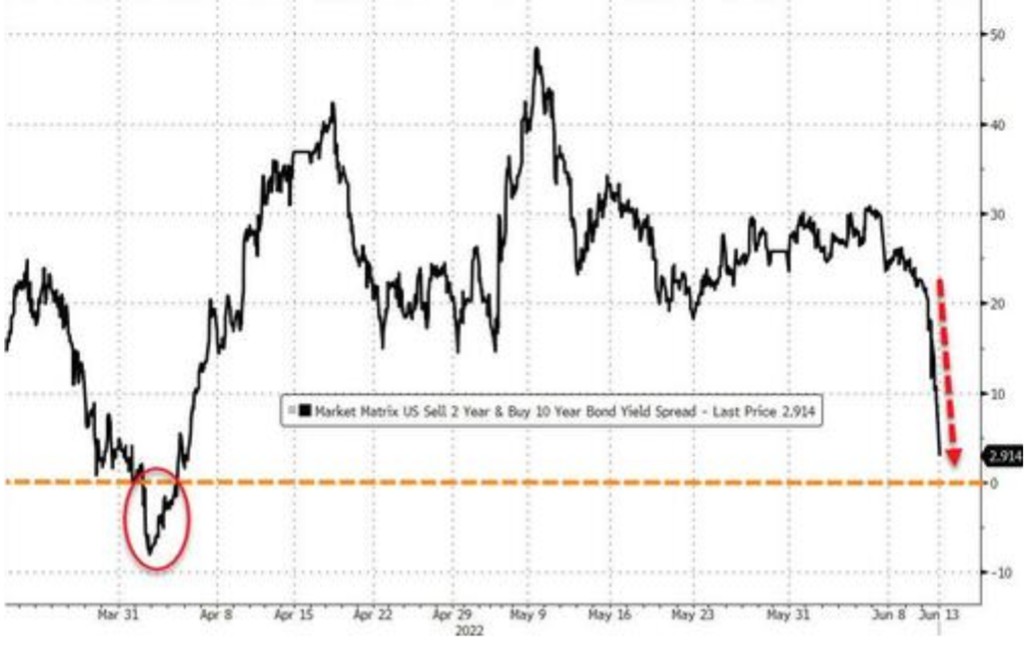 長端美債期貨跌幅較小,收益率上行約 1 個基點,但短端收益率再次受到重創,2 年期收益率上行 8 個基點至 3.14%。短債利率的急劇上升令美國國債收益率曲線逼近倒掛,這意味着,市場認為美國經濟將快速放緩甚至引發衰退。
