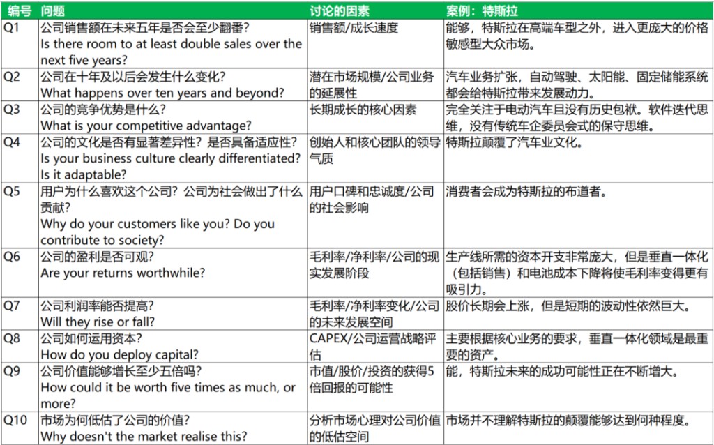 BG 對於投資的企業都有核心框架 10 問,BG 內部會基於這 10 個問題反覆辯論投資前景。