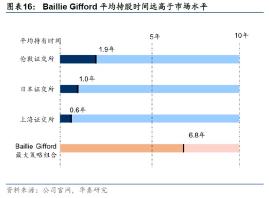 Baillie Gifford 將其投資期限從 2-3 年拉長到 5-10 年的維度,過濾當期業績噪音,更加關注公司未來前景。平均持倉時間長達接近 7 年,遠高於市場平均水平。