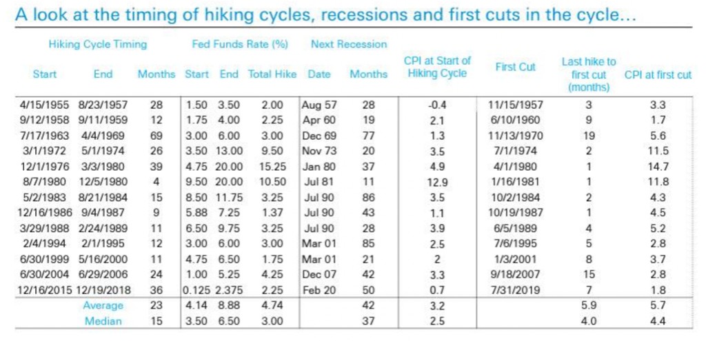 3、末次加息到首次降息的平均時間只有 4 個月,這再次支持市場觀點,即在本次加息週期結束後,將迅速開啓降息。