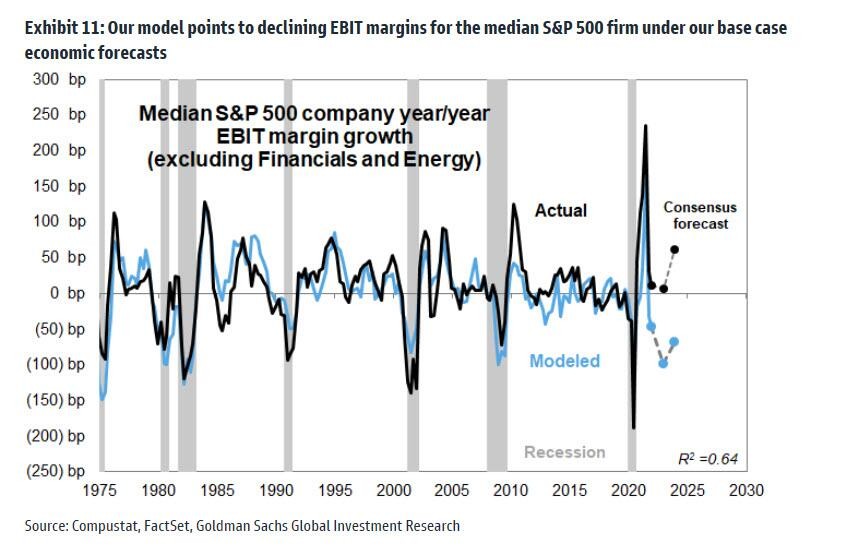 他進一步認為,在非衰退基本情況下,標普 500 公司明年息税前利潤率將下降 0.7 個百分點。