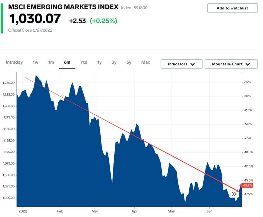 通脹、加息、衰退擔憂壓頂!新興市場股市創 1998 年亞洲金融危機以來最差上半年表現
