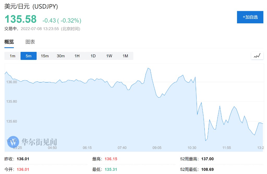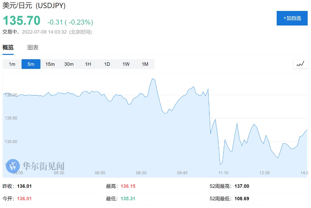 消息傳出後,市場避免需求上升,日元與美元應聲短線走高。截至發稿,漲幅有所回落,美元/日元跌 0.23%至 135.70,美元指數報 107.10。