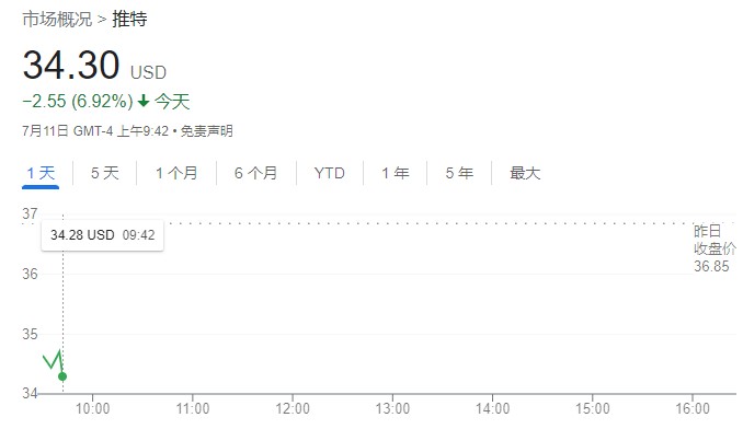在併購告吹消息傳出後,Twitter 股價週一美股早盤跌近 7%。公司董事會成員 Bret Taylor 表示,Twitter 將以違反合同為由將馬斯克起訴到特拉華州商事法院,Taylor 表示公司致力於按照達成的協議價格和條款完成交易。