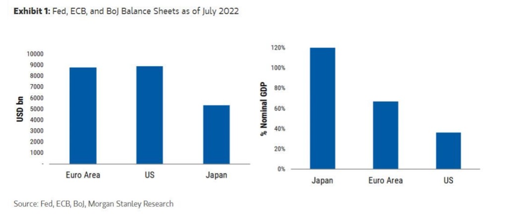 全球央行加息愈演愈烈的同時,“縮表” 也如期開展,但全球主要央行資產負債表規模走勢正在加劇分化。