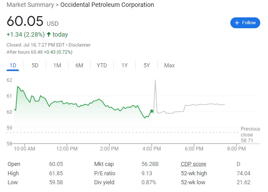 伯克希爾哈撒韋 7 月 14-16 日期間再次耗資 1.12 億美元買入 194 萬股西方石油公司的普通股股票,目前其總持股比例已經從此前的 18.7% 增加到 19.4%(約 109 億美元)。