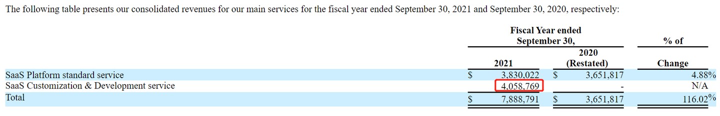 但截至 2022 年 3 月 31 日止 6 個月,三彩家的業績卻大幅下滑。由於房屋租賃市場的持續低迷,公司 SaaS 平台標準服務未錄得收入,SaaS 定製與服務的收入也僅增長 10.95%,這就導致公司總收入大跌 58.51%,持續經營業務的淨利潤更是同比下滑 95.7% 至 4.45 萬美元。公司表示,疫情的反覆,導致公司正常營業被中斷。值得注意的是,三個客户貢獻了 SaaS 定製與服務的主要收入。