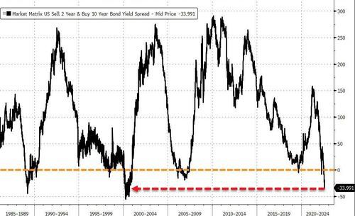 各期限美債收益率原本因衰退擔憂加劇而連續兩日攜手回落,關鍵衰退前瞻指標——2 年/10 年期收益率曲線持續倒掛。