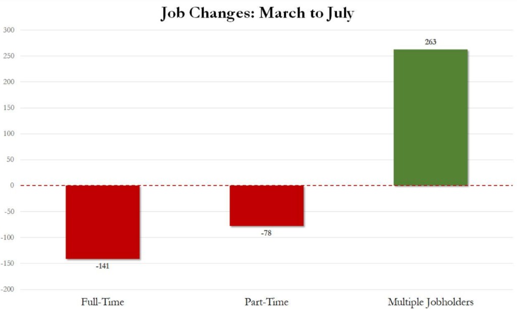 “家庭和機構調查分歧嚴重,全職工作崗位大幅下降,而多份工作就業人數飆升至歷史新高”,勞動力市場不盡樂觀。