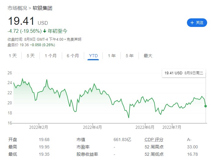 今年以來,軟銀跌近 20%;同期,阿里巴巴下跌 24.25%。
