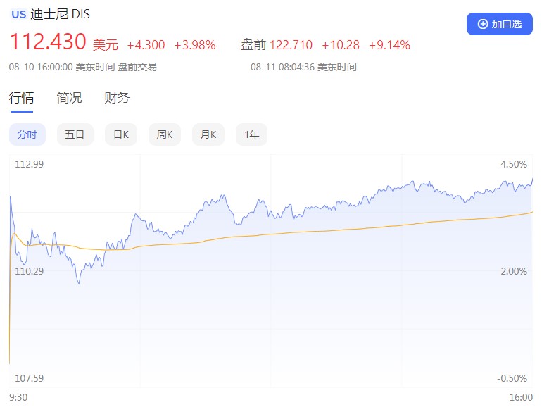財報公佈後,迪士尼美股盤前漲超 9%。