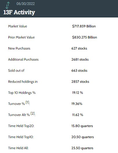 據統計,摩根大通第二季度持倉總市值為 7178.59 億美元,上一季度總市值為 8302.75 億美元,環比下降 13.5%。小摩在第二季度的持倉組合中新增了 627 只個股,增持了 2681 只個股。同時,小摩還減持了 2857 只個股並清倉了 663 只個股。其中前十大持倉標的佔總市值的 19.12%。
