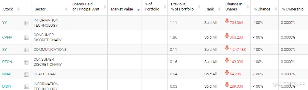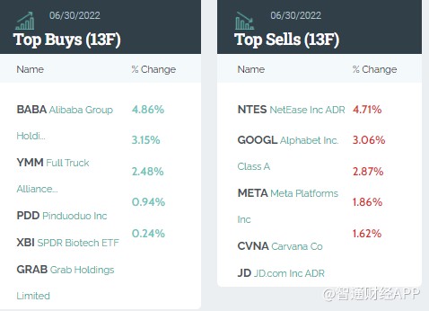 二季度獲得大手筆增持的阿里巴巴 (BABA.US)、滿幫 (YMM.US)、拼多多 (PDD.US) 也擠進前十大持倉。