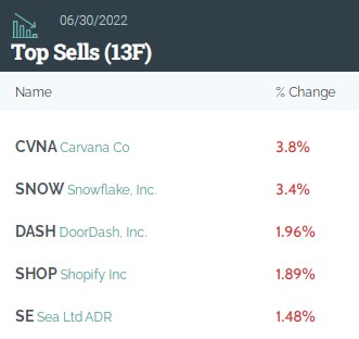 老虎環球前五大賣出個股中,Carvana 股價自 7 月以來上漲一倍多,Sea 股價反彈 35%,Shopify 股價反彈了 28%,Snowflake 股價反彈 23%。