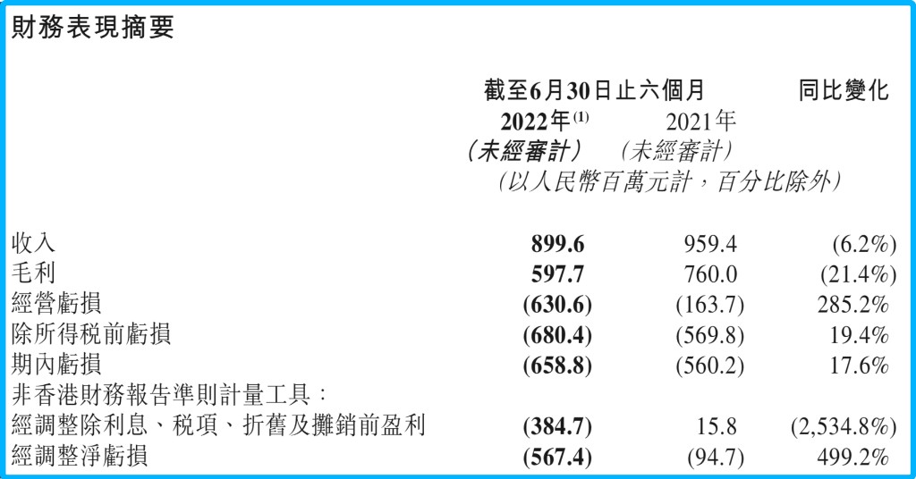 2022H1 微盟主要財務情況
