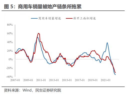 乘用車銷售則與居民消費能力和意願相關,商用車銷售與房地產開工相關。今年受益於購置税政策變化、拍牌額度增加等因素,乘用車銷量高速增長;但是地產開工疲軟,商用車銷量下滑明顯。