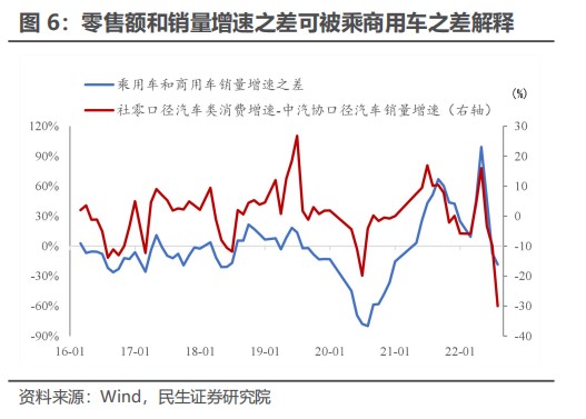 汽車零售額(社零口徑)與汽車銷量(汽車業協會)差異,關鍵在於商用車銷量變化。